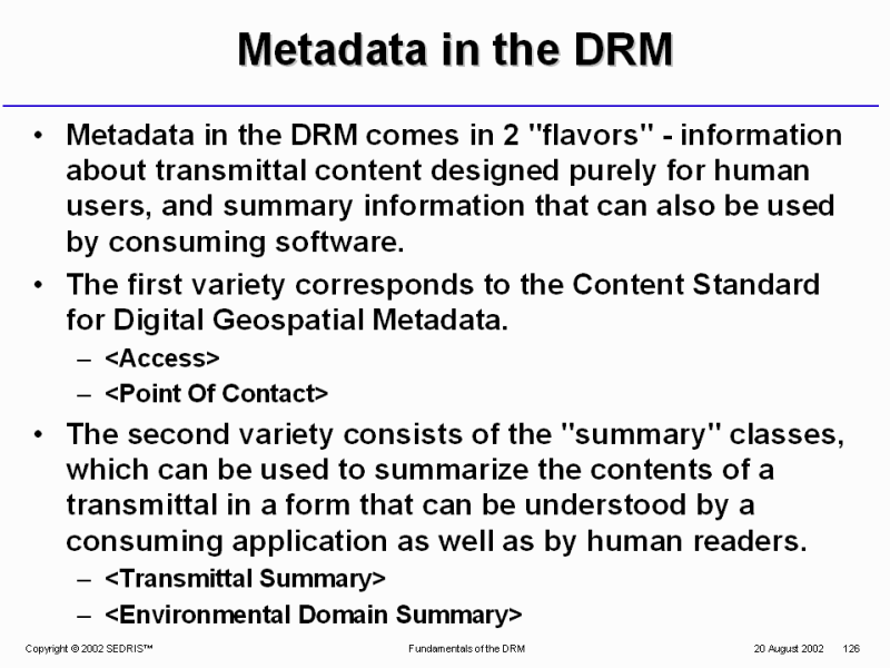 How Is the SEDRIS DRM Expressed In Actual Data Sets? |
