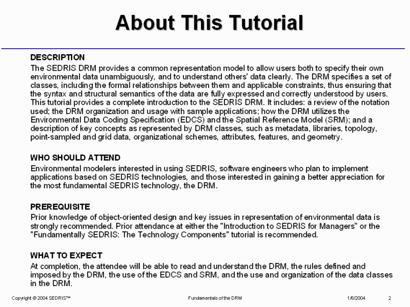 How Is the SEDRIS DRM Expressed In Actual Data Sets? |