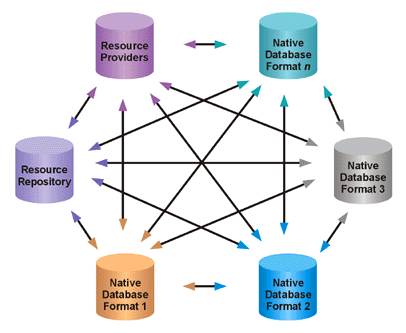 A common representation of the physical environment is a critical element in modeling and simulation (M&S) and is a necessary precondition for the interoperability of heterogeneous simulations. The level of interoperability achieved depends heavily upon the degree of consistency, completeness, and unambiguous definition of environmental data. Previously, no uniform and effective standard mechanism existed for describing, reusing, and interchanging environmental data among M&S applications. Additionally, data sharing rarely occurs between the operational and simulation communities even though each community uses representations of the same physical aspects of the real world. Without an effective interchange mechanism, most simulated environment database interchange continues to be accomplished by point-to-point unique conversions between two applications, as shown in the figure for "n" networked simulations. Each arrowhead shown in the figure is a unique conversion software module.
