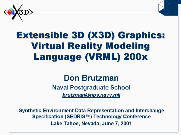 Extensible 3D (X3D) Graphics: Virtual Reality Modeling Language (VRML) 200x |
