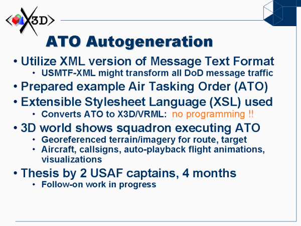 Autogeneration of georeferenced Air Tasking Order (ATO) LSVEs, using XML-based Op Orders |