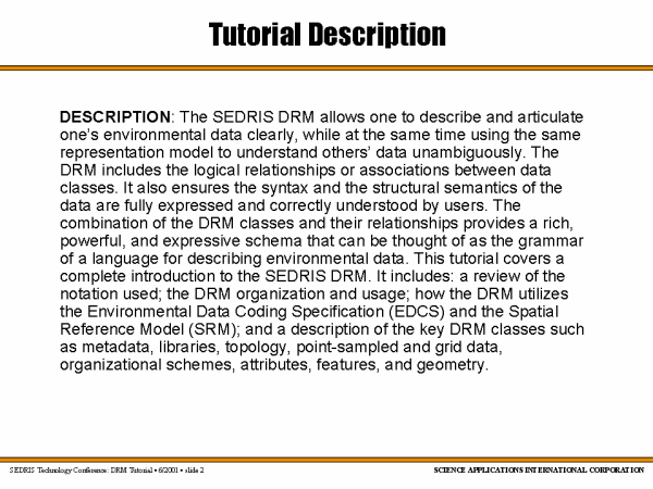 Short Refresher on SEDRIS Technologies |