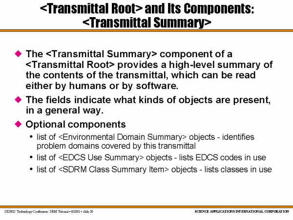 <Transmittal Root> and Its Components: <Transmittal Summary> |