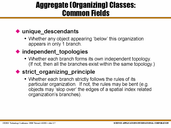 Aggregate (Organizing) Classes:Common Fields |