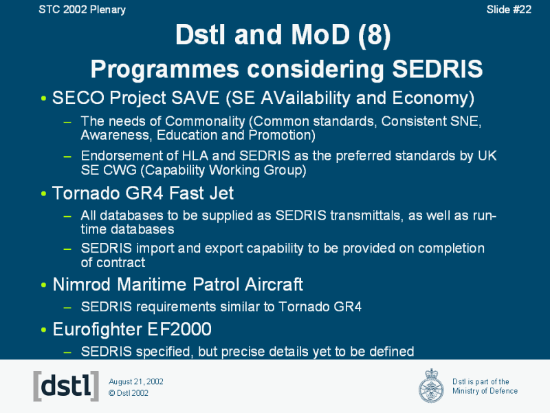 Programmes considering SEDRIS |