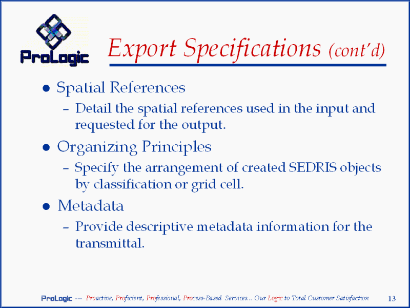 Export Specifications (cont�d)
