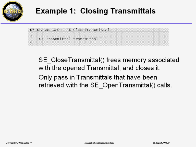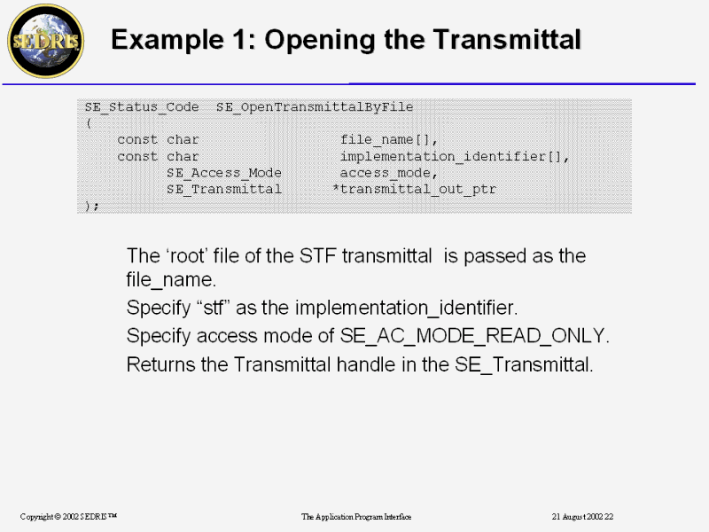 Example 1: Opening the Transmittal |