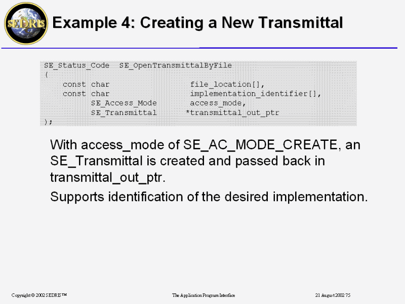 Example 4: Creating a New Transmittal |