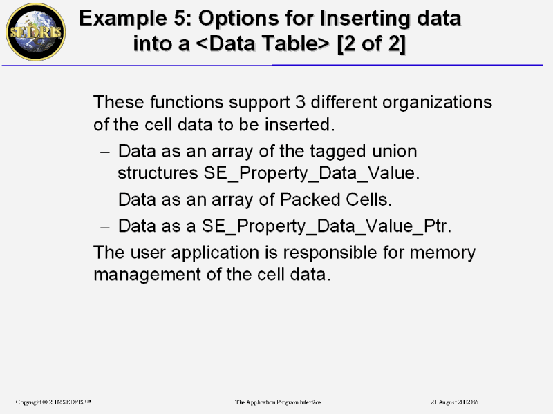 Example 5: Options for Inserting data