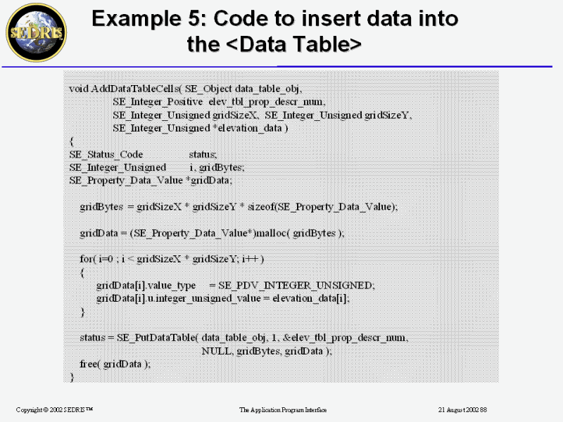 Example 5: Code to insert data into