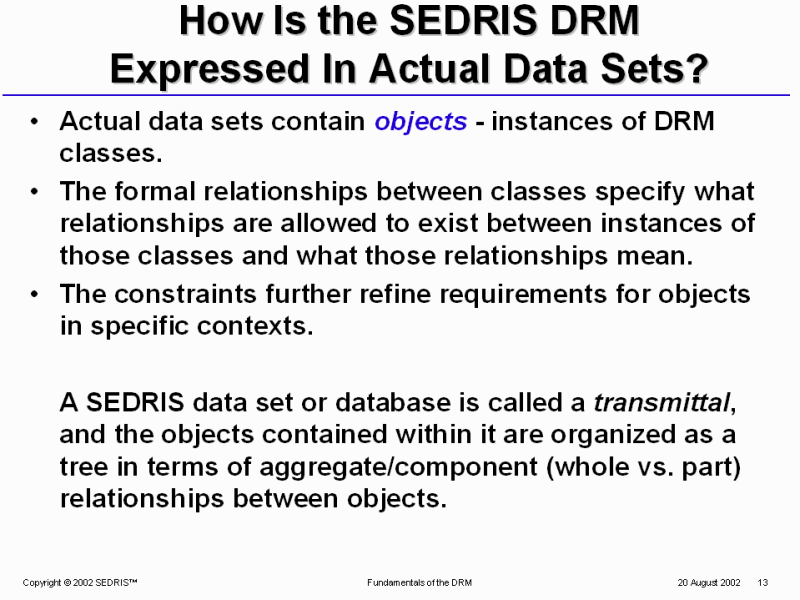 How Is the SEDRIS DRM Expressed In Actual Data Sets? |