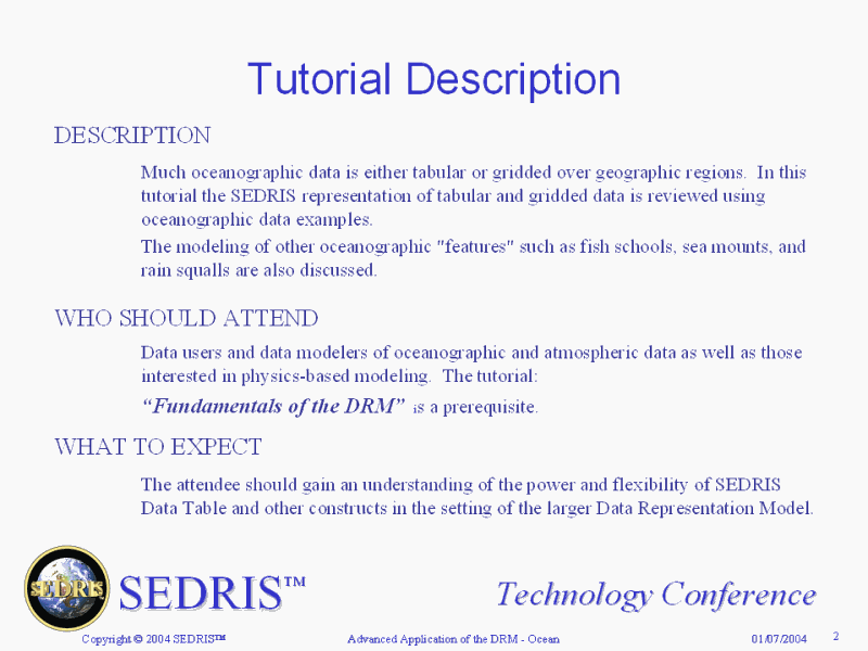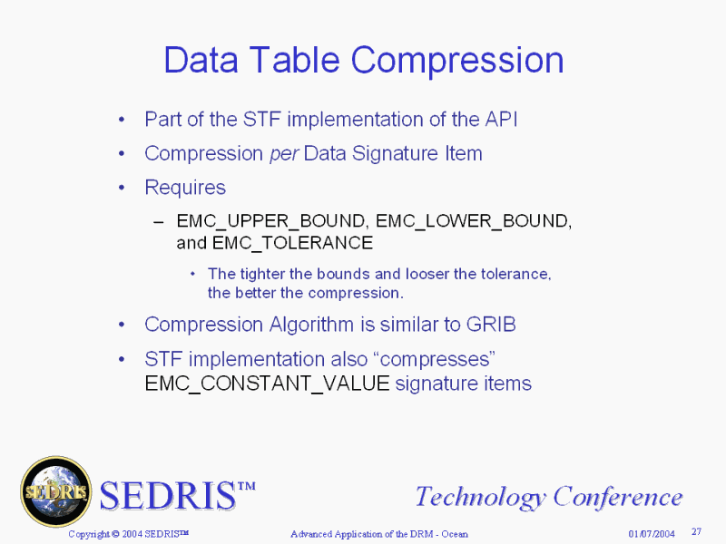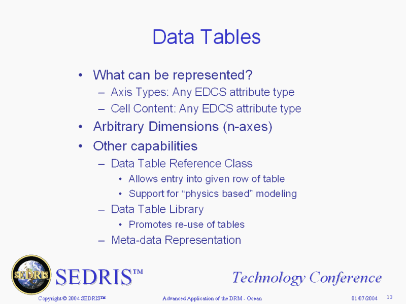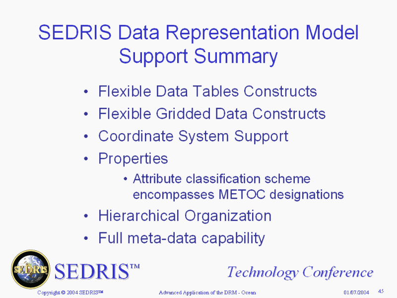 SEDRIS Data Representation Model Support Summary |