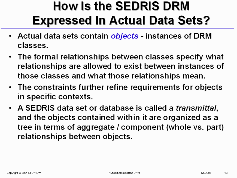 How Is the SEDRIS DRM Expressed In Actual Data Sets? |